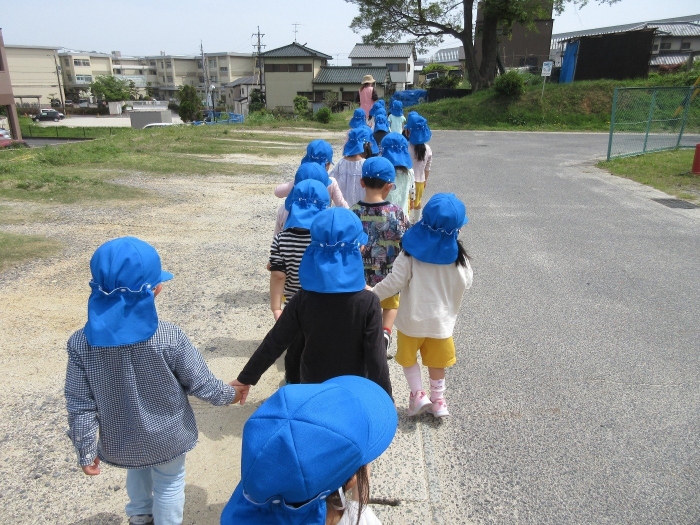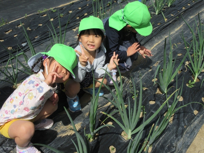 年少さんの時に植えた玉ねぎを見に、畑に行ってきました。