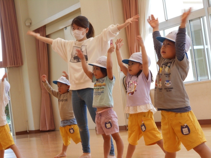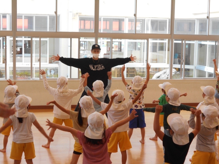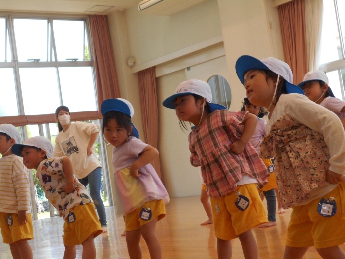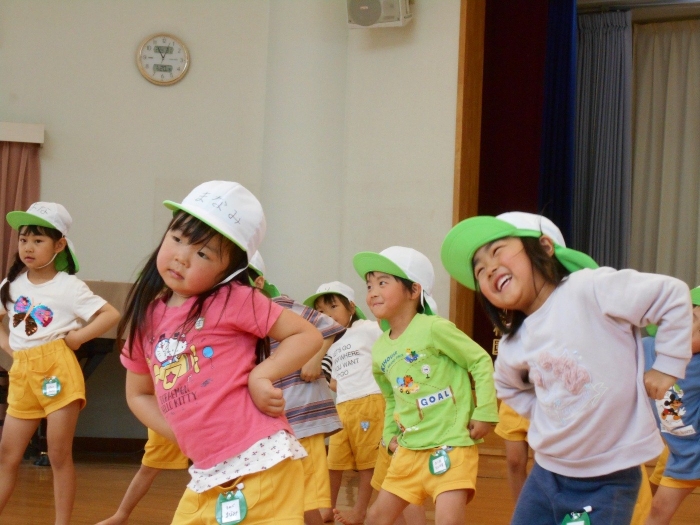 今年度もKO-ICHI先生による「ファンクダンス」がスタートしました。今日は初回ということで年中さんと年長さんが参加しました。まずは先生と一緒に身体をほぐし、その後早速新しい曲に合わせ、先生の真似をしながら楽しんでダンスに参加していました♡年度末の参観ではお家の方にもに見ていただけると思います(^▽^)/楽しみにしていてくださいね!!