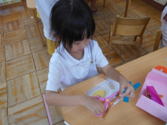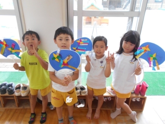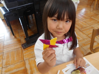 7月に行われる夏祭りに向けてうちわ作りをしました!今年のうちわは、手裏剣で作る流れ星です。