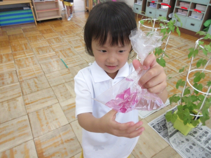 朝顔の花を使って色水を作りました!