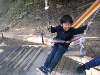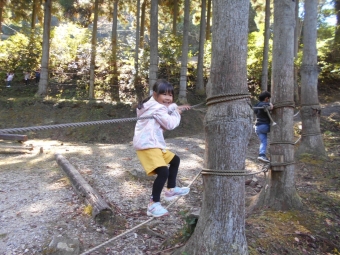 年長さんで六所山野外センターに行ってきました。施設の方からお約束事を教えていただいた後に、まずはロープウェイ、忍者ロープなどで遊びました!ロープウェイは想像よりもスピードが出ていてお子さまたちは驚きながらも楽しんでいました♡