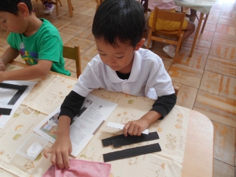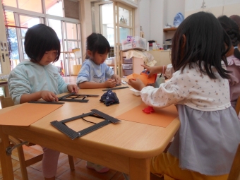 お花紙を丸めて火を作ったよ♪