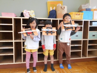 食欲の秋!!ということで、今回は広告やアルミホイルを使って"秋刀魚"を作りました。まずは、広告とアルミホイルを細長く丸めて、秋刀魚作り!形が完成したら、油性ペンを使って秋刀魚に色を付けました。