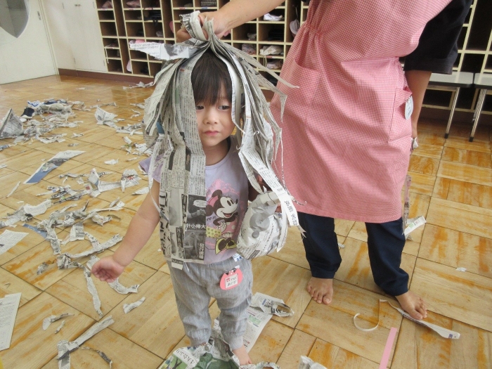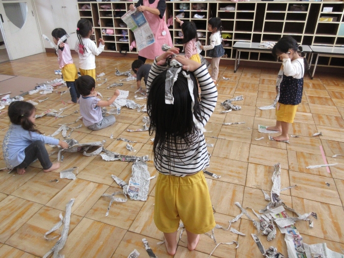 新聞紙であそびました!大きな新聞紙を使っておばけに変身したり、ボールを作ってキャッチボールしたり、ハンドルを作ってドライブしたり…💕いろんなものに変身させてあそびました!最後は使った新聞紙をびりびりちぎって楽しみました✨またやろうね♪