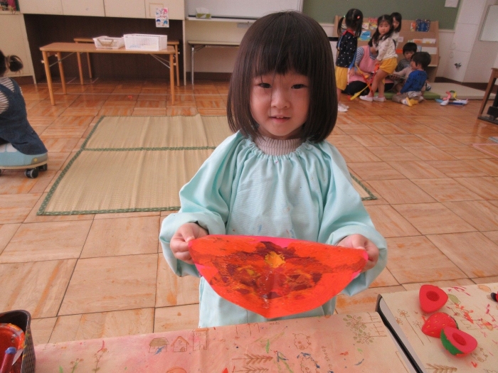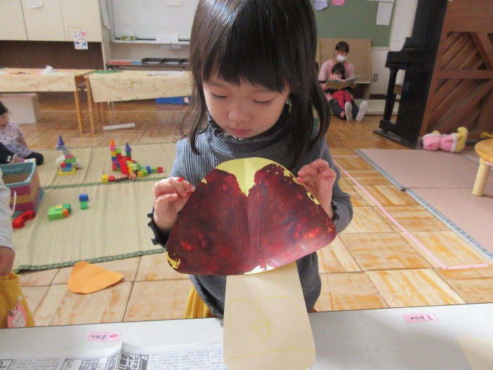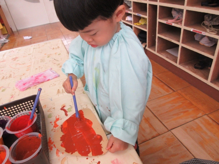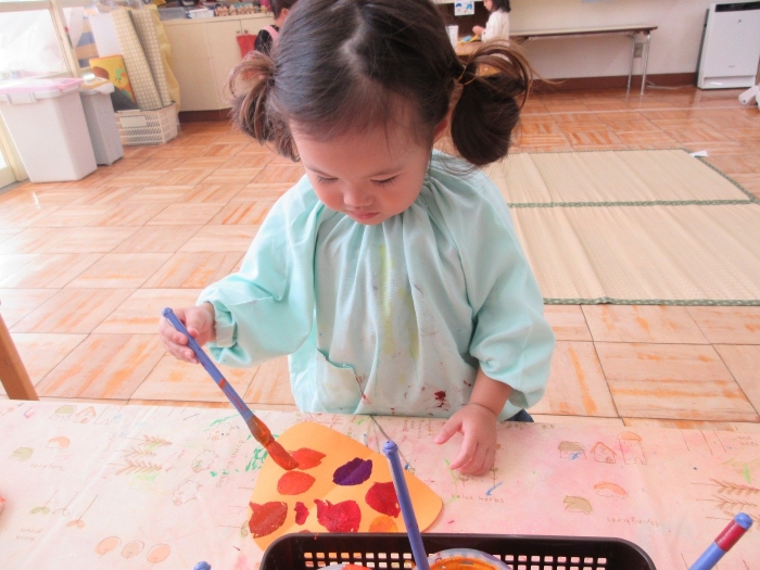 ”きのこ”の歌がお気に入りということで、秋製作に絵の具を使ったキノコを作りました★絵の具で描くのが大好きなロケットさん!自分の順番がくるのをわくわくしながら待ちました💕保育室の壁面は可愛いきのこでいっぱいです!