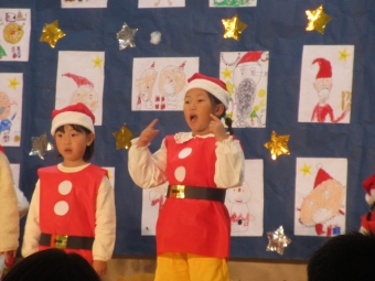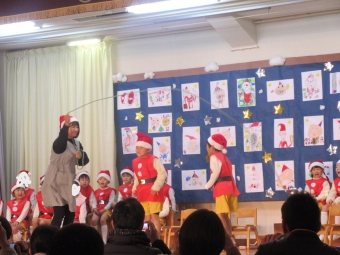12月9日に年長さんの生活発表会を行ました。みのりの組は「あのね、サンタの国ではね…」ことばの組は「アイウエオリババ」を演じました。約1か月間毎日練習に取り組んできたお子さまたち...朝登園すると「ドキドキする!」「上手くできるかな…」と緊張している姿がありましたが、本番が始まると真剣な表情で練習してきたものをお家の方へお見せすることが出来ました。