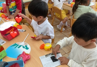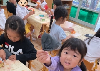 以前、兜を折った年中さん!