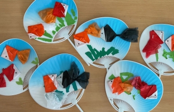 今年度は折り紙で金魚を折って