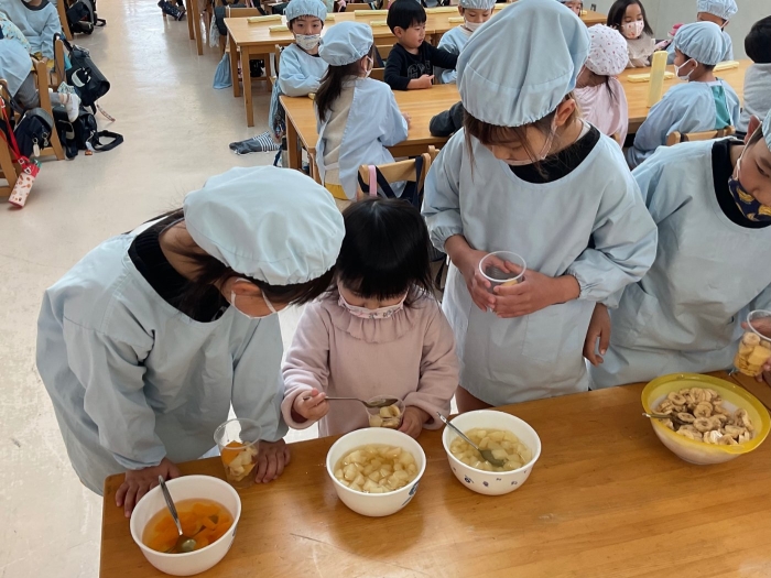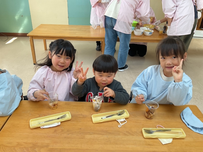 ロケットの組と年長クラスで一緒にパフェを作りました!
