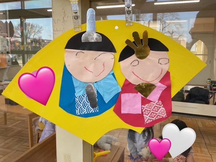 切った折り紙を画用紙に貼り付け、顔を描いたら完成です。ひな祭りの日が楽しみだね🎶