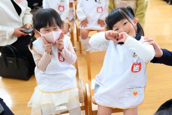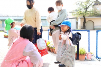 進級の子は新しいクラスの先生との顔合わせ、新入の子は入園式が終わりました。明日からおうちの人と離れての生活が始まります。
