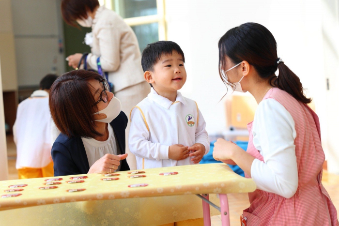 涙顔での登園の子もいると思いますが、少しずつ「楽しいところ♡」となっていくようにまずは教職員が笑顔いっぱい!で迎えていきたいと思います♪