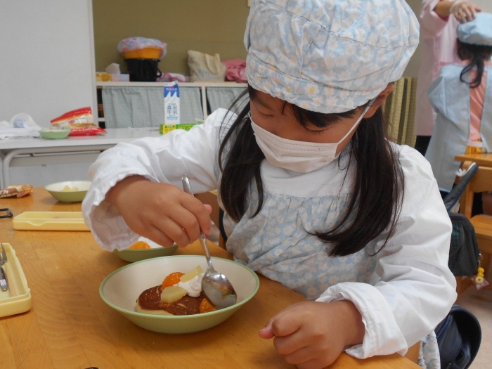 自分たちで作ったホットケーキの味は格別だったようです!!ペロリとたいらげたお子様でした(⌒∇⌒)