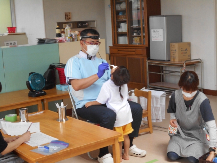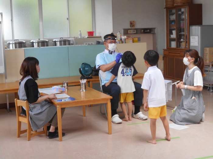 安城市にある「かいファミリー歯科」の先生に来ていただき、歯科検診を行いました。大きな口を「あーん」とあけて、虫歯がないかをチェックしてもらいました。年中・年長さんは経験していることもあり、しっかり口の中を見せることができました。年少さんは、ちょっぴりドキドキしている様子でしたが、甲斐先生が、「見るだけだから大丈夫だよ!」と優しく声をかけてくださり、大きなお口をあけることができました!!みんな上手にできたね!!