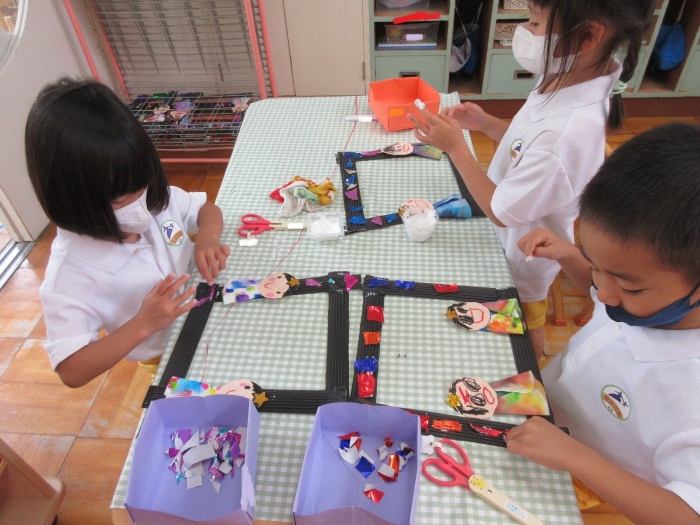 「織姫と彦星は仲良しなんだよ」「デートしているんだよ!」と織姫と彦星を仲良く並べていましたよ😊