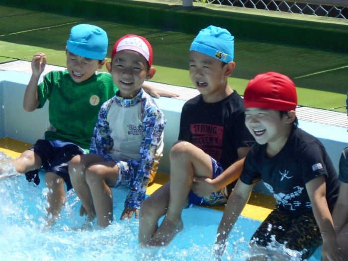 今日も絶好のプール日和!!ということで、今日は各クラス順番に大きなプールに入りました!!