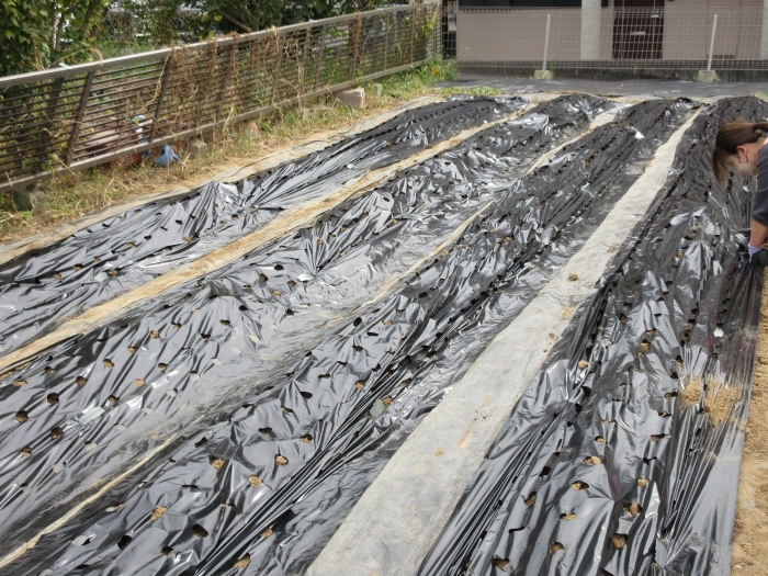 耕して肥料を撒き、マルチを張る作業をお手伝いいただきました☆