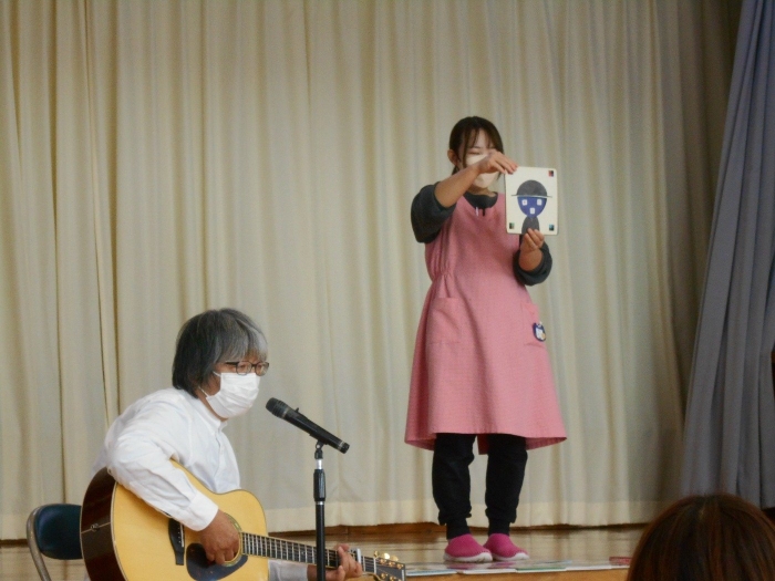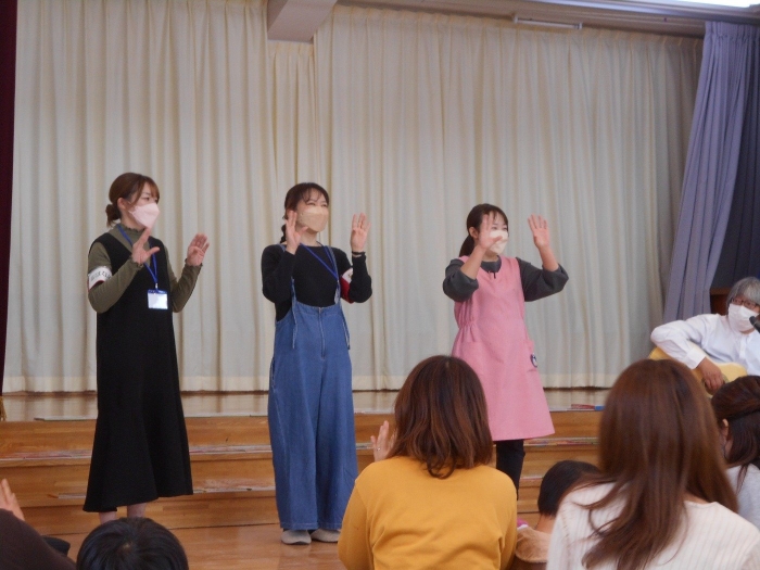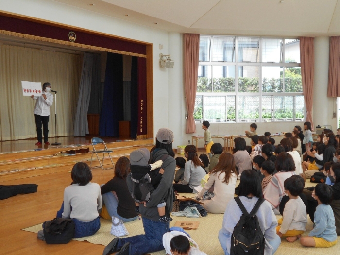 10:00からは、花の木村さんが、年中親子向けにセミナーを開いてくださり、歌をうたったり、手遊びをしたり、大型絵本を見せてもらったりしました。親子の触れ合い遊びもあり、楽しいひとときを過ごせました♡