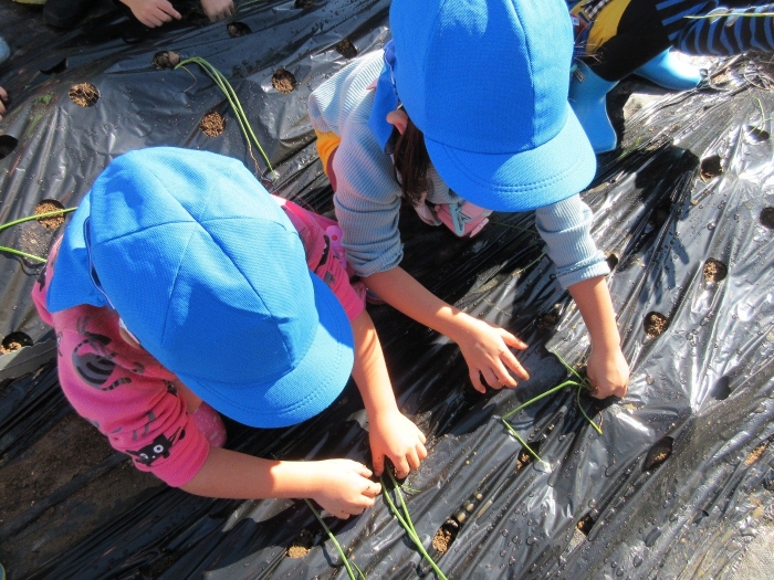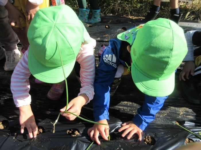 植え方のポイントをしっかりと聞き準備万端!苗を土に植え、しっかりと土をかぶせるとお子さまからは「大きくなりますように!」と可愛らしい…声が☆