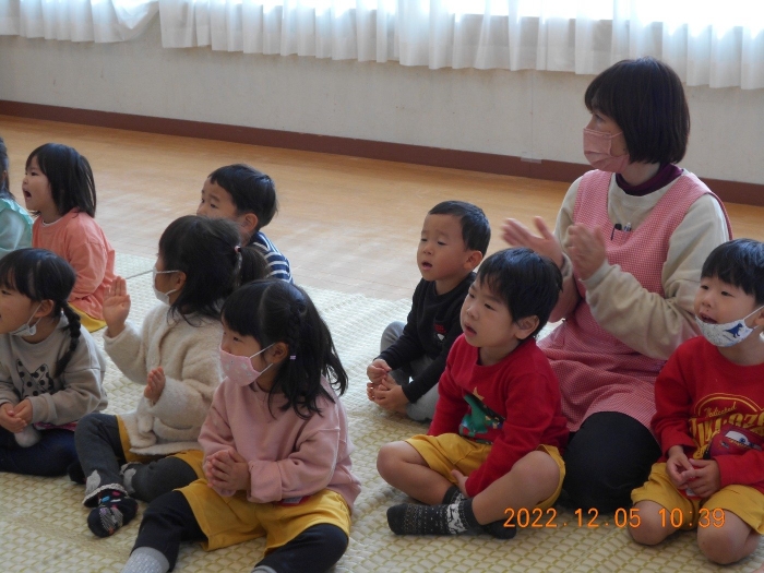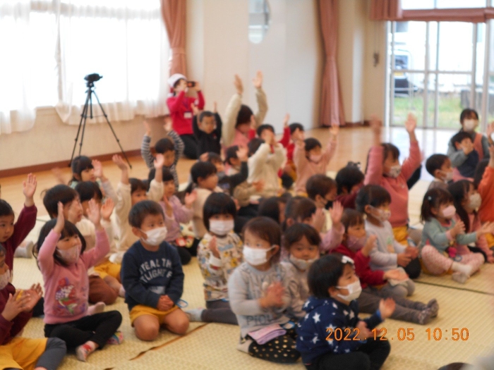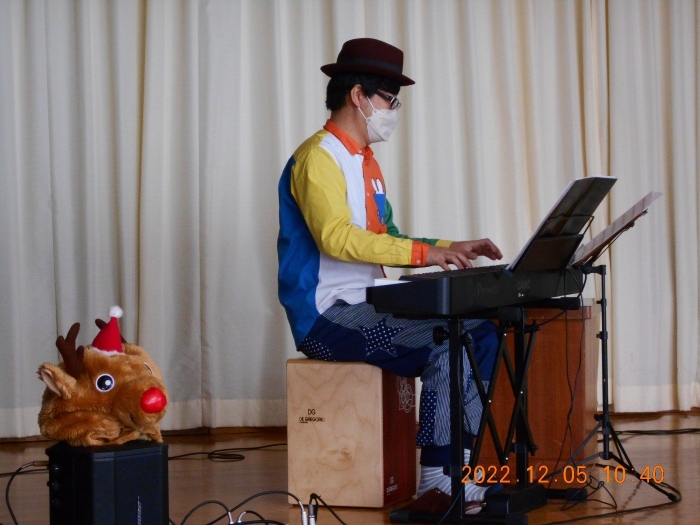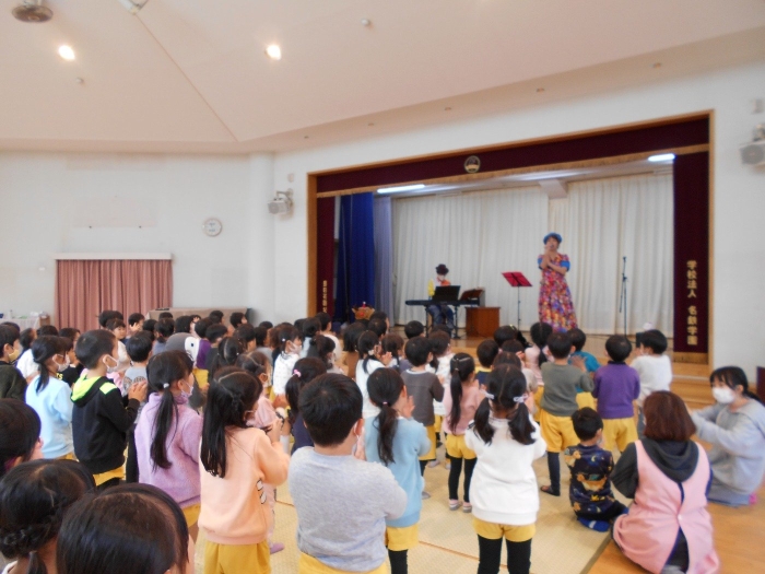 今日は、はなぞの会主催による「クリスマスジャズコンサート」を聴きました。「ジャンボリーミッキー」や「さんぽ」「アンパンマン」などお子さま達の大好きな曲をたくさん聴かせていただきました♡ 手拍子をしたり、一緒に口ずさんだり、楽しいひとときを過ごせたようです。最後は「クリスマス」の曲だったね!!プレゼントの準備に大忙しのサンタさんにも聴こえたかな♡