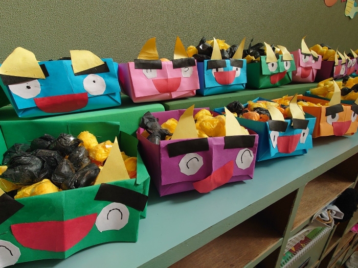 豆箱の中にはティッシュとお花紙で作った豆をたくさん入れて準備完了!!