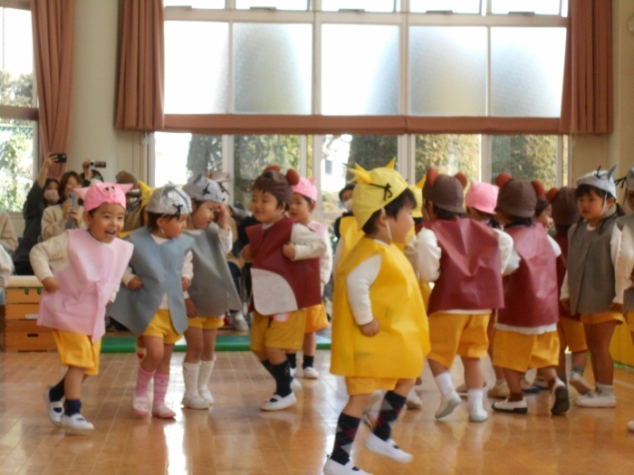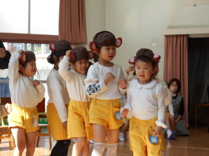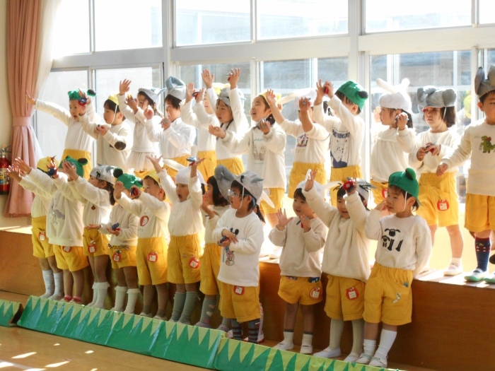 今日は年少クラス・満3・2歳児クラスの生活発表会がありました。お家の人が見に来てくれるということで、お子さま達は朝からソワソワ( ´艸`)「なんかドキドキするねー-!!」「今日はパパとママが見に来てくれるんだよー!!」などとお友だちと話す姿が見られました(^▽^)/