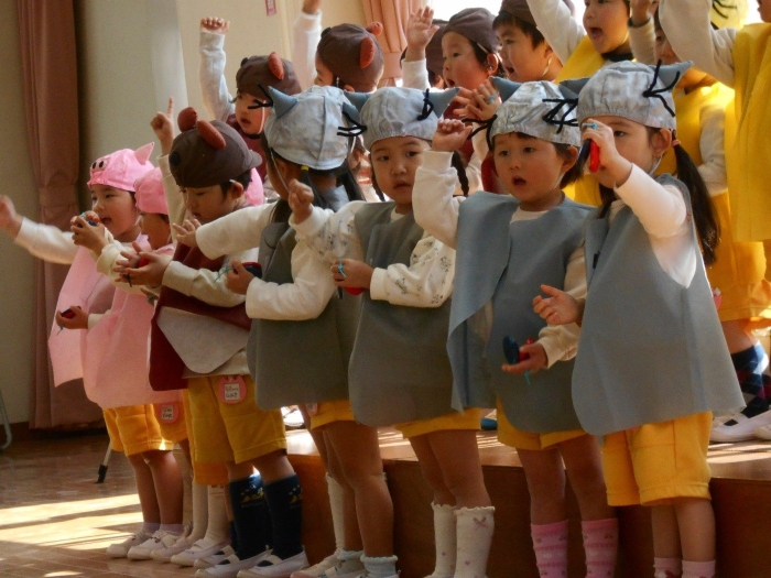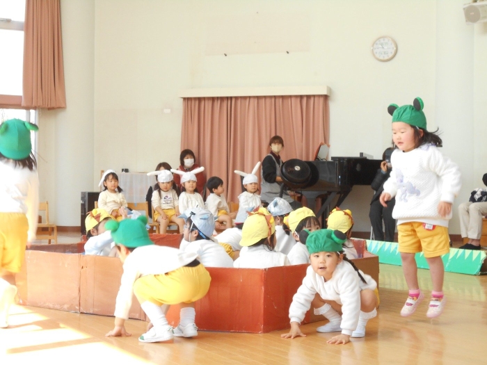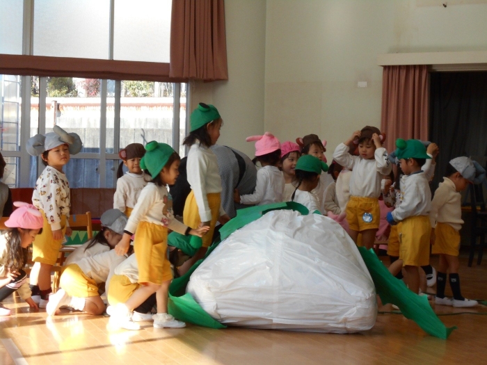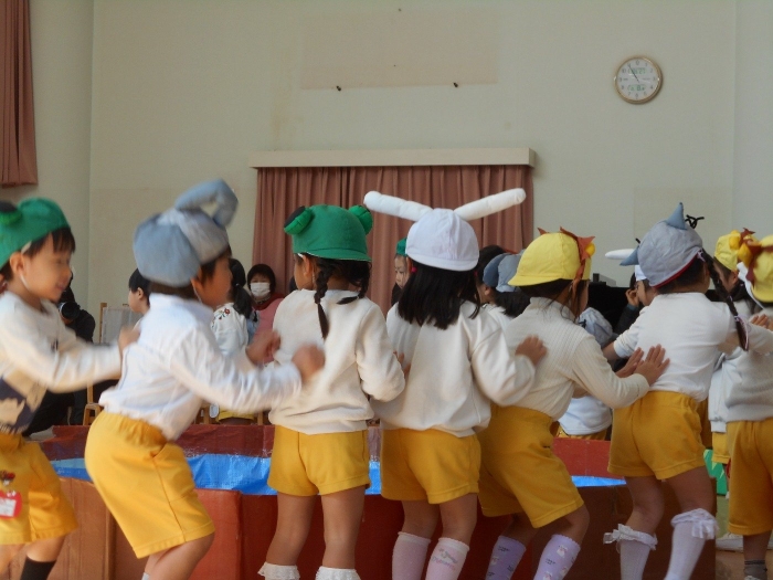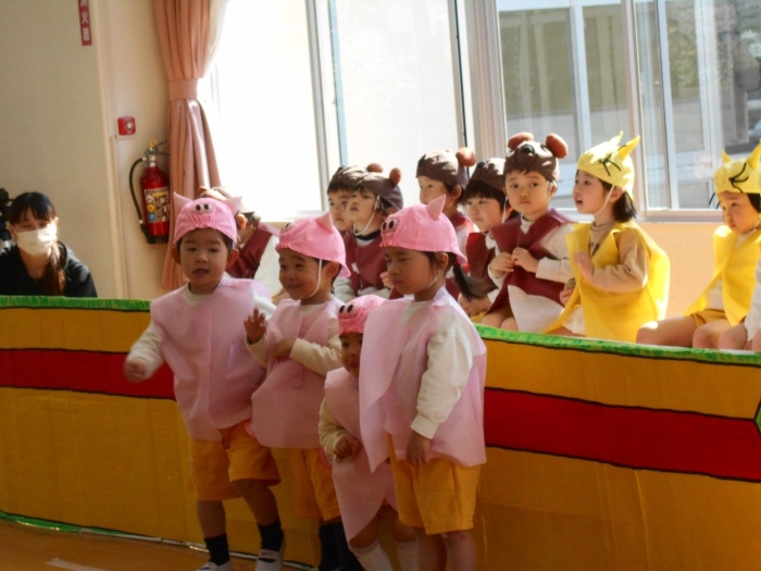 ホールではお家の人に見守られながら、楽しんで劇ごっこを披露することができたお子さま達。拍手もいっぱいもらえて嬉しかったね♡