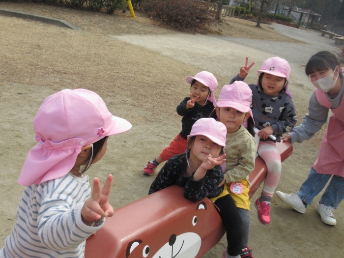 別日には久しぶりに公園へお散歩に行きました!歩くスピードも大分速くなり、長い時間公園で遊ぶことができました♪またみんなで公園に行こうね!!