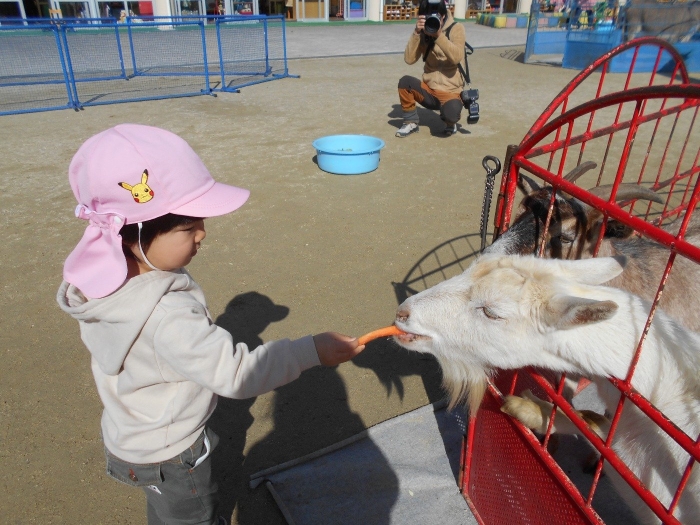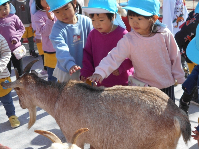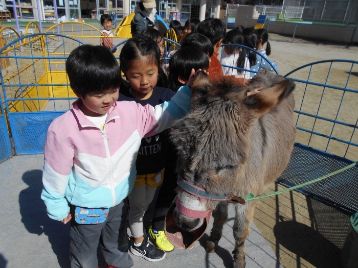 今日は「いちご動物園(移動動物園)」が幼稚園に来てくれました♡ 登園時間に大きな赤いトラックが園庭に入ってくると「どうぶつえんがきたよー---!!」「わー--い!!」と大喜びのお子さま達。お家から持参した「えさ」を片手に「早くあげたいね~♡」と言いながら、トラックからおりてくる動物たちにくぎ付けでした(^▽^)/