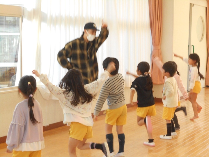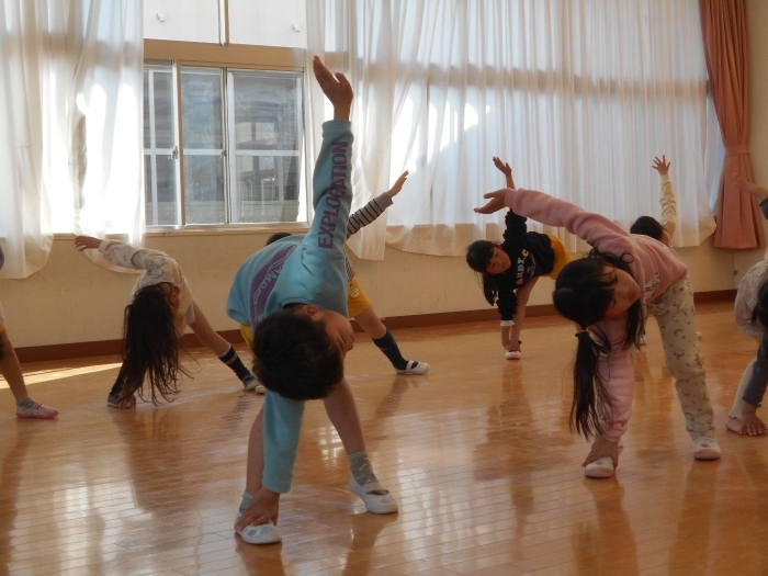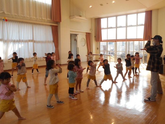 来年度から始まるファンクダンス課外教室の体験会をしました! 月に1回あるファンクダンスのこういち先生が教えてくださるということで、たくさんのお子さま達が体験会に参加しました♡ 今日も始めに準備体操でしっかり身体をほぐし、今回は星野源の「恋」に合わせて踊りました(^▽^)/ こういち先生のダンスを真似ながら、とってもかっこよく、そして楽しんで参加していました!! 参観された保護者の方からもたくさんの拍手をもらい、ちびっこダンサー達はとても嬉しかったようです♡ 4月からの課外教室が楽しみだね!!