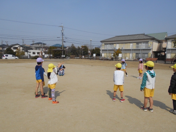 鶴喰公園では、持参した縄跳びやドッヂビーで遊んだり、公園の遊具を楽しんだりし、クラスのお友だちと存分に遊びました。卒業まであと少しですが、今日もまた1つ素敵な思い出ができました♡