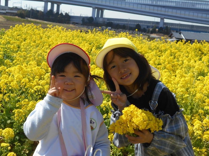 菜の花畑に行ってきました(^▽^)/(年少・年長預かりさん)